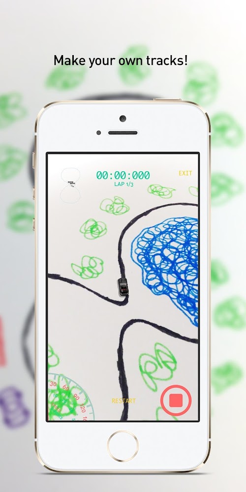 It's time to get a pen and paper (or a napkin :) and doodle an amazing track. Take a picture of the track and the game will analyze it and let you drive it!