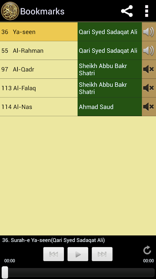 ☆ Share any Quranic surah with your friends. Share and when ever your friend will listen, you will get  equal reward from Allah S.W.T