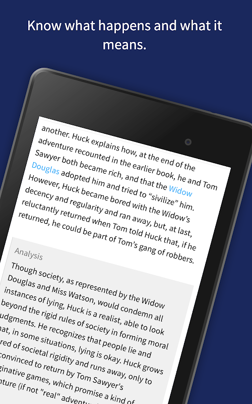 •Deeper understanding: Our summary and analysis appear side-by-side, meaning you get instant understanding of every plot point.