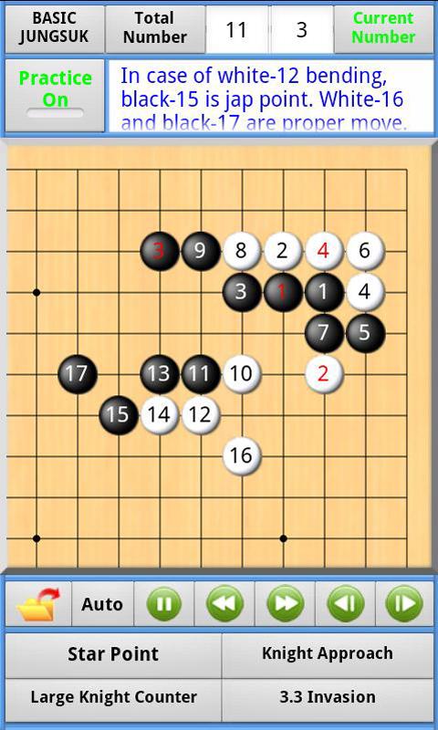 A Jungsuk is one of the locally optimum sequences available to both players in a corner. This program is designed for beginner and mid-level players and is useful both as lesson and as references. This program covers basic corner patterns, or jungsuk, and discusses common sequences based on the Star, 3-4, 3-3, 4-5, 3-5 and Special points.