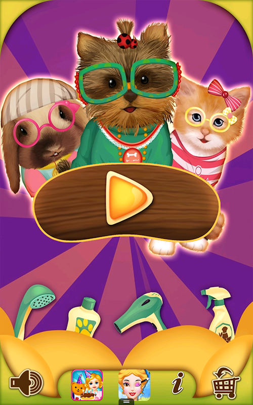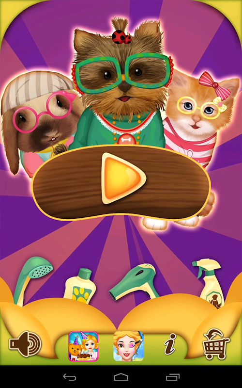 First choose one of the lovable animals to care for. Then give him (or her!) a bath. Scrub away all the dirt and then you can pick the cutest little outfits for each of your furry little friends!