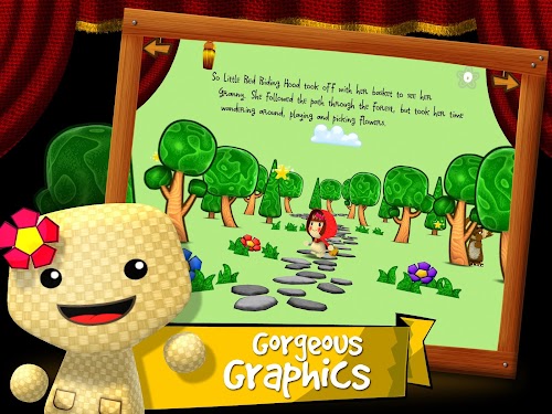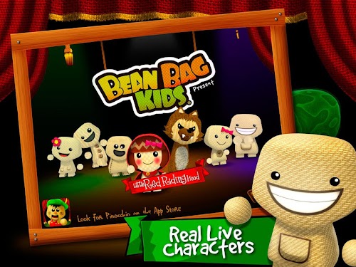 Little Red Riding Hood, the first of many 3D interactive fables, performed by the Bean Bag Kids®. Pea, Pinto, Cocoa, Jack and Vanilla have made a show for you and your kids. Interact with Red Riding Hood, the Wolf and Granny as they perform their play. By tapping each character you'll help them act even better! Enjoy the beautiful scenes of this classic bed time story, told in an absolutely new way, that will amaze babies, toddlers, kids and parents.