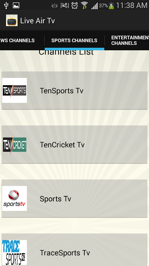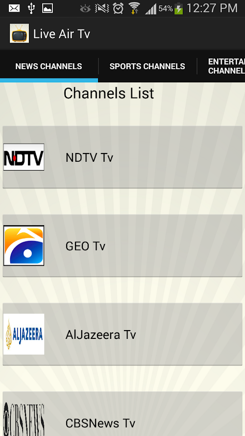 "Live Air Tv" is a platform to access global channels in one app. It has three categories news, sports
