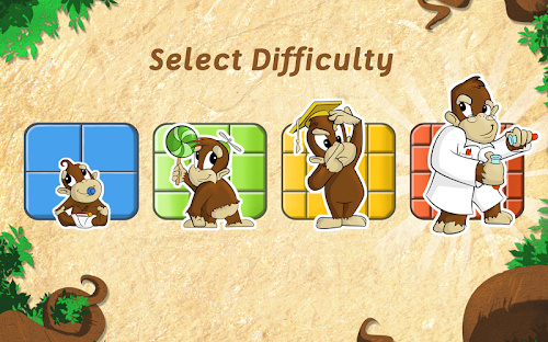 This jigsaw puzzle contains a hidden difficulty mode. To unlock it, one has to unlock all the puzzles in the hardest level of difficulty (monkey scientist). There is much fun in the perspective with flipping pieces: just click on a piece to make it rotate horizontally.