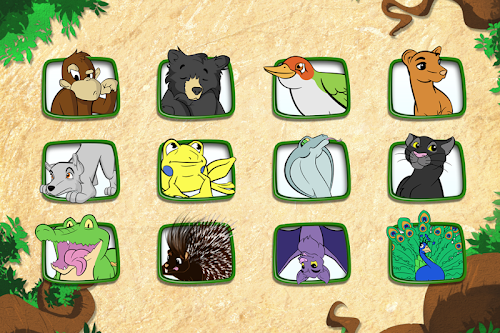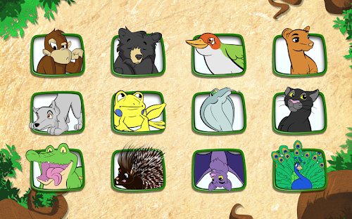 - 12 animals to discover from the same type of Indian forest as in the Jungle Book from Kipling (adventures of Mowgli).