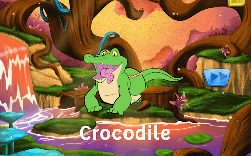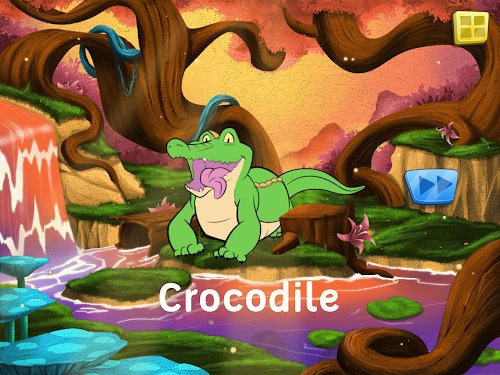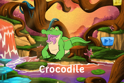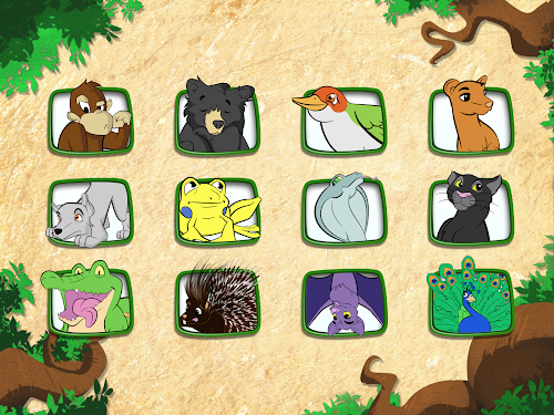 When the puzzle is completed, children can click on the animal to play a rewarding and funny animation. The name of the animal is displayed and is spoken when children click on the text.