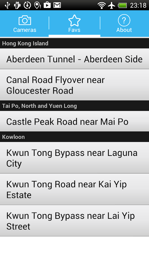 Traffic Cam Hong Kong is the fastest way to get to the traffic web cams that matter to you. Instead of browsing to a web site and working your way through the menus and map graphics to find a web camera just open Traffic Hong Kong on your Android and go straight to the camera you want with one click.