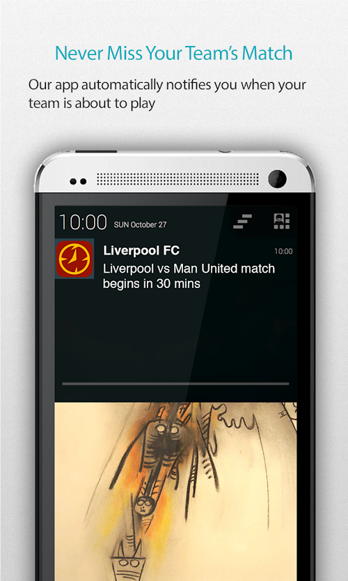 It shows you the match timing and 30 minutes before kickoff, it rings an alarm to remind you.