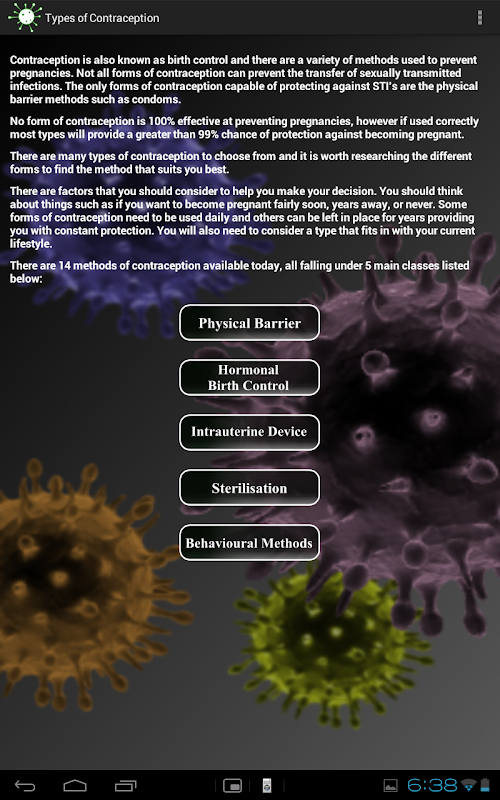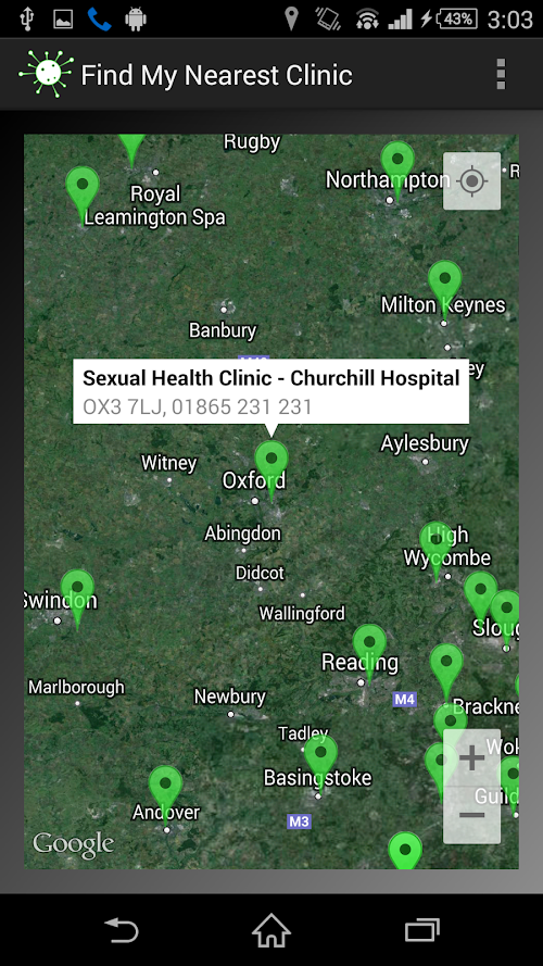 This guide provides you with an easy to navigate, high performance, visually appealing application that will provide you with all the necessary information required on a wide range of topics including 23 sexually transmitted infections, information on how to spot the early signs, Google Map services to find your nearest GUM clinic with up-to-date contact information and much more!