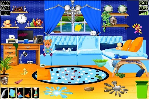 Do you enjoy cleaning? Sometimes it can be tedious to do the cleaning, but it is very important for our health. Our house looks more beautiful and comfortable when it is clean. Everything we were looking for a clean house we can easily find. That's why children should learn at an early age the habit of cleaning. We have prepared this cleaning game for you. Our living room is very dirty and unkempt. But we believe that you can make oder clean and tidy. To do this, you have given enough time and tips. When do you stretch within the allotted time to clean the living room. Cleaning materials to use when needed. This kids game consists believe that your cleaning habits. We know that it will be useful for cleaning game. This fun kids game for free. Good luck to all.