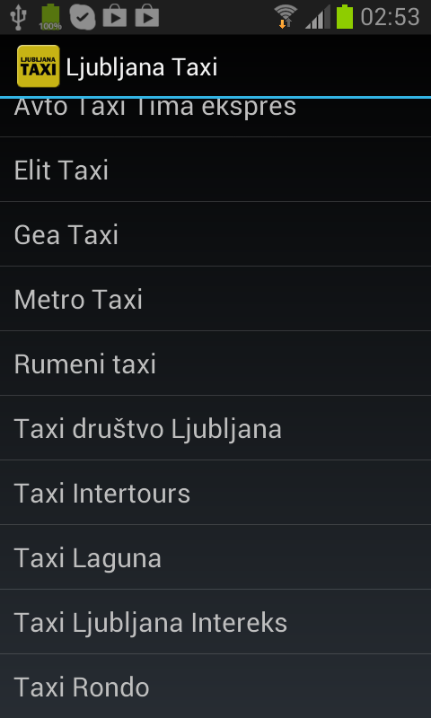 The list and order of Taxi services is the same as on the official Ljubljana tourist site.