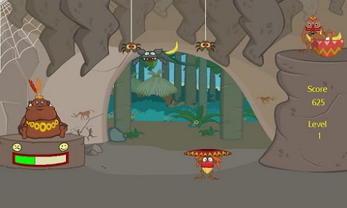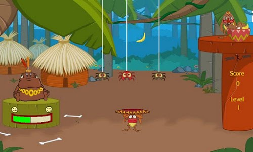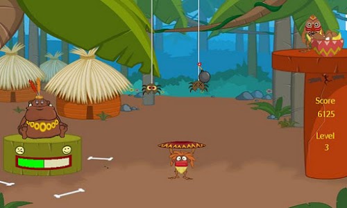 Bounce the chief’s food off the tray on your head. Make sure you don’t feed the chief “dangerous” food so he doesn’t blow up on you! Beware of those sticky spiders who would like to grab the chief’s food.
