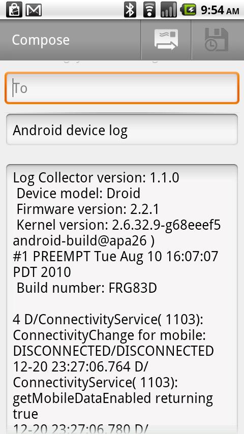 Collects a device log and sends it to a developer using a method (email, messaging, etc.) of your choice. The log data is vital to troubleshoot a crashing, or otherwise misbehaving application.