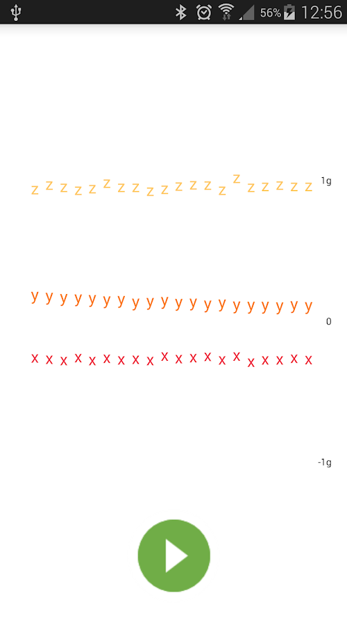 Just hit the green play button and that´s it! You are logging all accelerometer data!!!