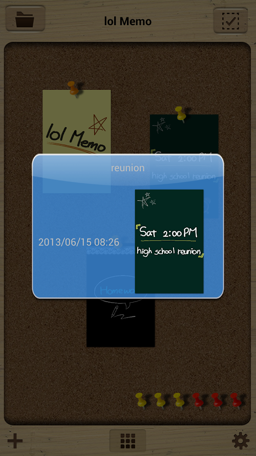 All stored files can be seen like little notes attached to the bulletin board. Also, it has the reminder alarm function to maximize users' convenience.