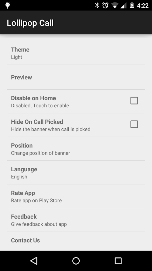 This version of Lollipop Call Android App comes with one universal variant which will work on all the Android devices.