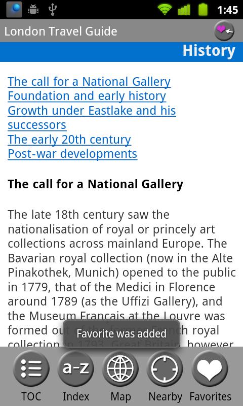This fully-functional guide is absolutely free. The full version (only $4.99) adds Text-To-Speech and expands articles with more information about attractions, history, culture, itineraries, phrasebooks and more. Listen to complete articles on the go with Text-To-Speech: double-tap on a word to start Text-To-Speech from the selected word or select Menu > Start Text-To-Speech.