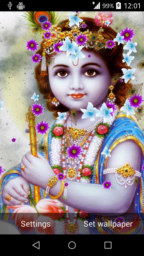 "Lord Krishna Live Wallpaper" app contains multiple Special Lord Krishna wallpaper and you can easily control the Flowers,animation speed by setting options. choose various types Flowers .move up and down the animation.Lord Krishna is a Hindu God and Peoples of India celebrate Lord Krishna birth as Krishna Janmashtami, this festival mostly comes in the month of August and September .