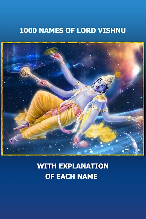 Lord Maha Vishnu / Lord Narayana is one of the important god in Hindu caste, Lord Vishnu has got 1000 Names, which is compiled as Vishnu Sahasranamam, out of these 1000 Names, each name has a meaning and a Story attached to it. This is just a basic app which tells about the Meaning of 1000 Lord Vishnu Names in Alphabetical order. This is a Free application anyone can use it and get the blessings of Lord Narayana(Sri Maha Vishnu).