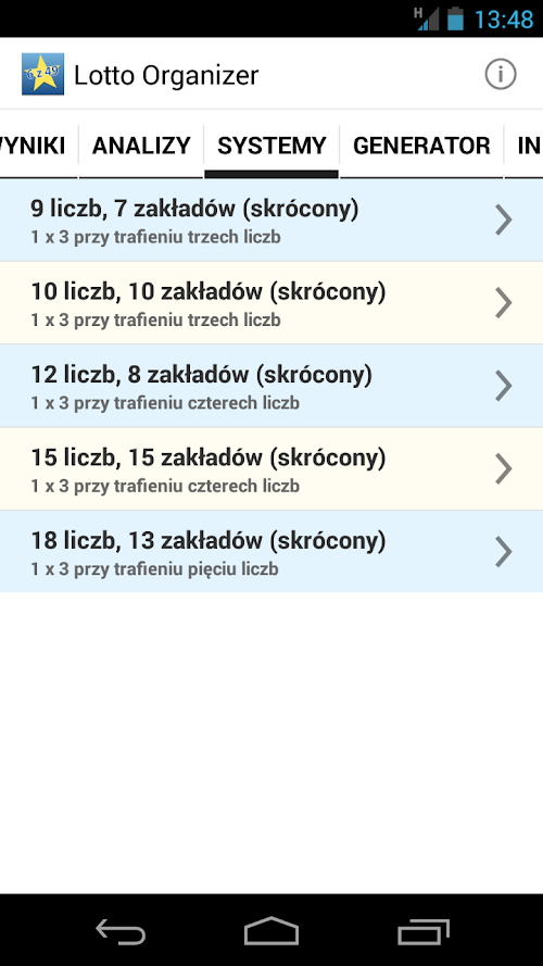 5. Zwiększysz swoje szanse na wygraną dzięki GENERATOROWI SYSTEMÓW SKRÓCONYCH (5 wariantów, kolejne w drodze), który pozwoli Ci obstawić więcej liczb i w taki sposób rozpisać je na kuponach, że trafienie określonej ich ilości będzie *GWARANTOWAŁO* wygraną!