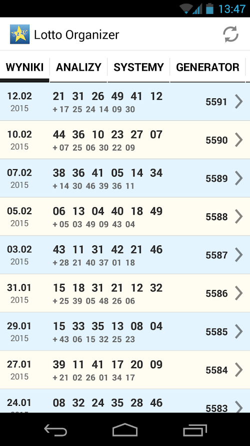 1. Będziesz miał zawsze pod ręką aktualne WYNIKI LOSOWAŃ oraz informację o WYSOKOŚCI BIEŻĄCEJ KUMULACJI.