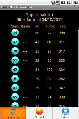 - Visualizzazione dei 10 maggiori numeri ritardatari e frequenti del lotto, superenalotto (sestine,jolly e superstar), dieci e lotto, dieci e lotto ogni 5 minuti.