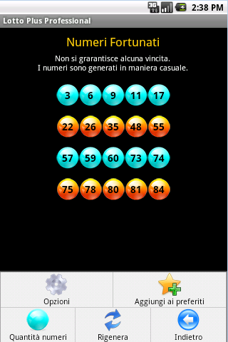 - Numeri fortunati, generatore di numeri casuali con possibilità di includere o escludere la ruota su cui giocare personalizzando la quantità di numeri da visualizzare.