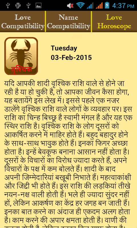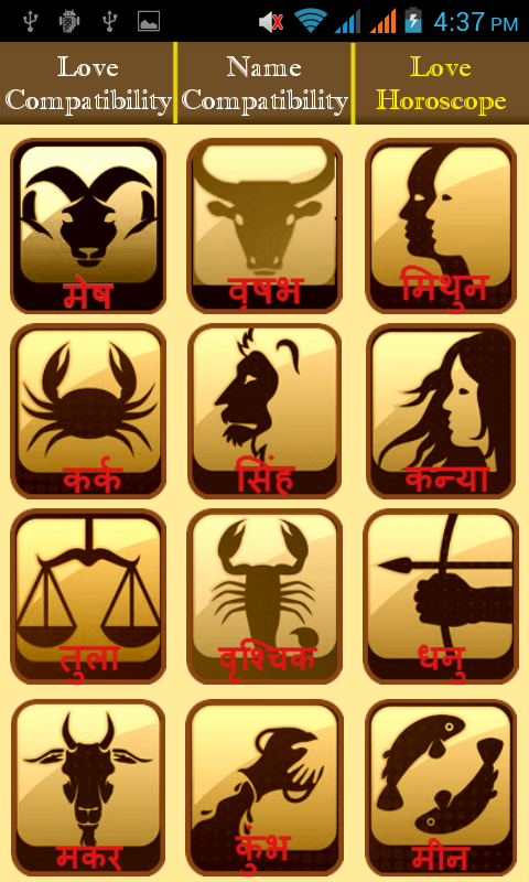 - This App Divided in three parts Name comparability,love comparability and Love horoscope.By नामांक मिलान