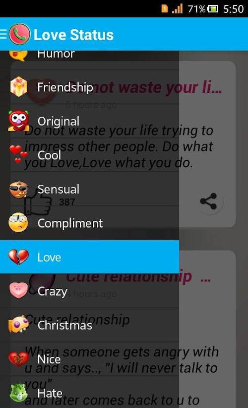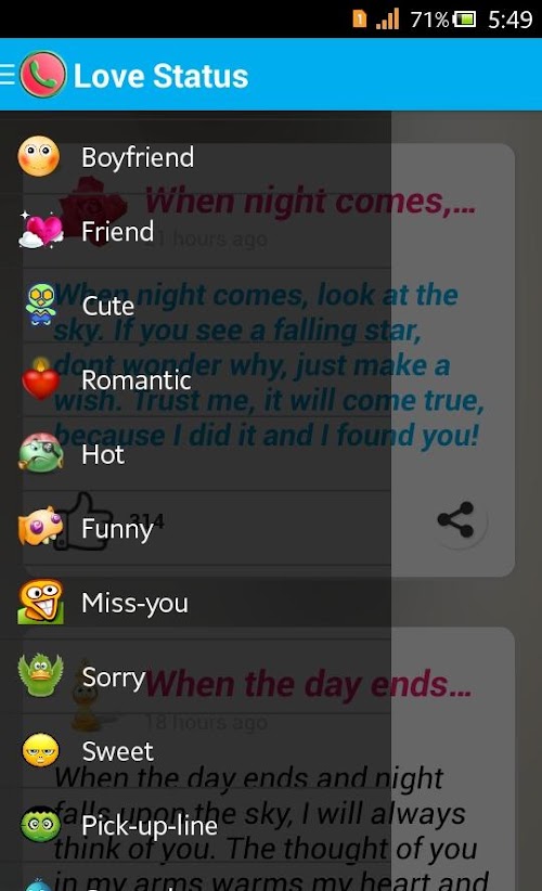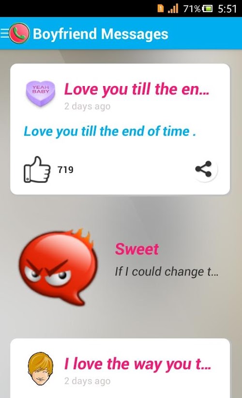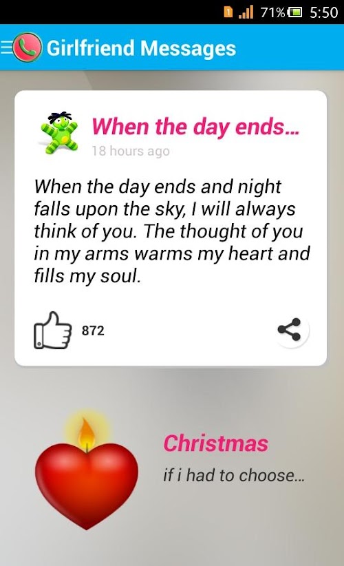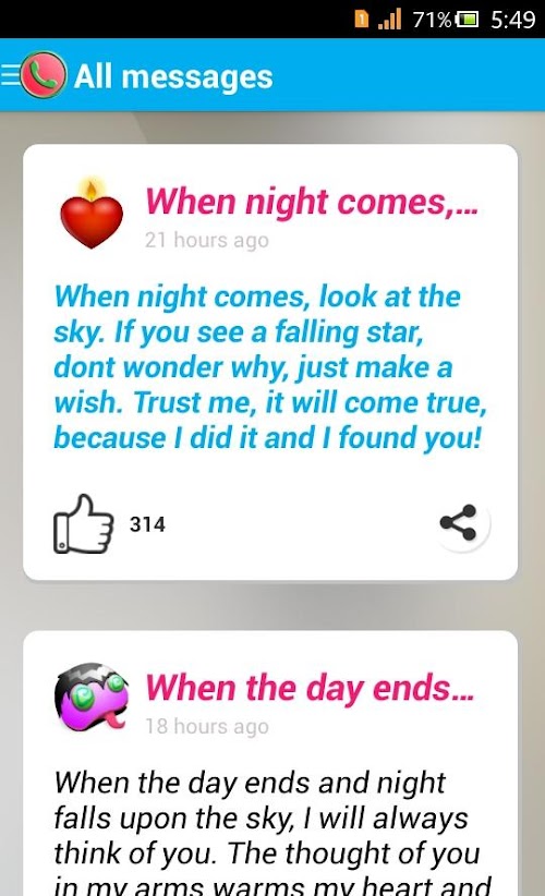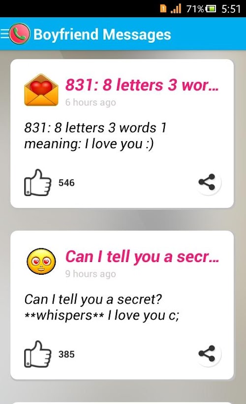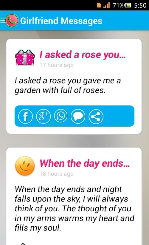 ->Tap the share icon below to share your favorite Love Message For Whatsapp messages to contacts via SMS E-Mail old Bluetooth way or you can also share SMS via lots of