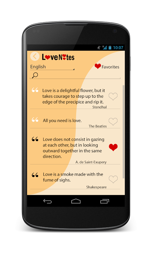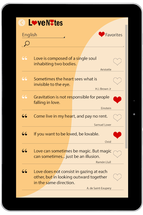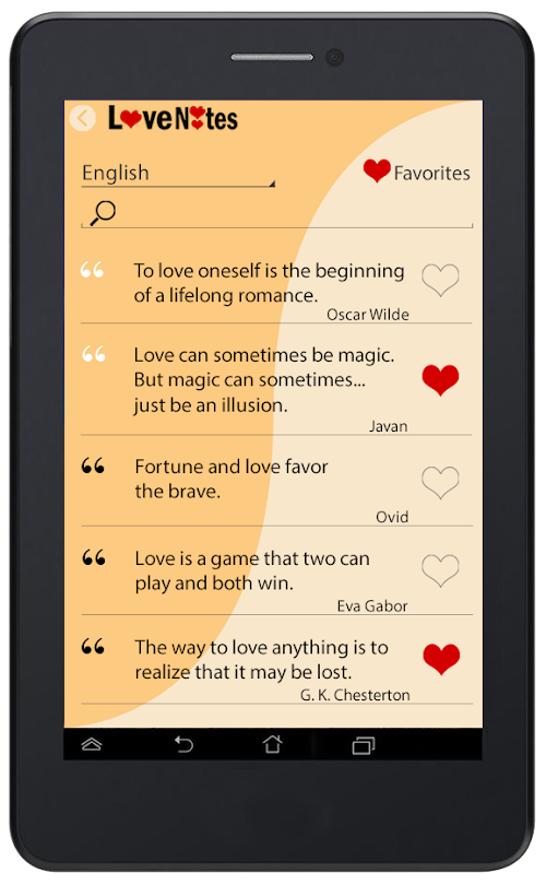 Love Notes also allows you to access hundreds of romantic quotes by famous people. All quotes are about love. Love Notes allows you to create loving postit to hit straight to the heart!