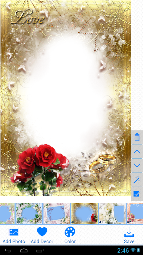 "Love Photo Frames" is a collection of over 100 beautiful photo frames for decorating your love photos, wedding photos,... It has the same function as: Love Photo Frames, Wedding Photo Frames, and some other apps.