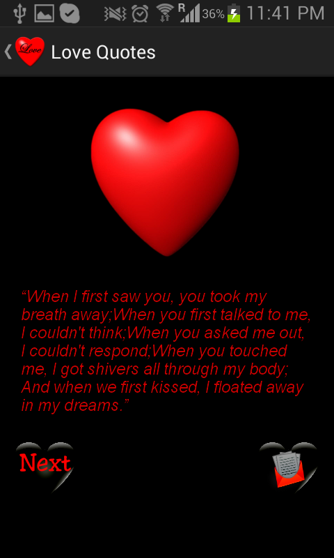 There is a feature to send the love quotes to your beloved through sms, email and share through Facebook, Twitter and Skype.