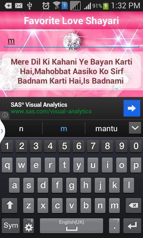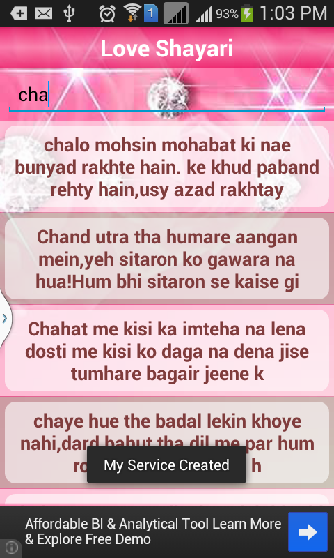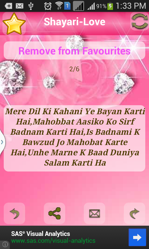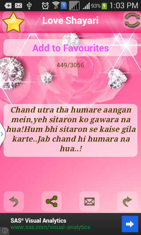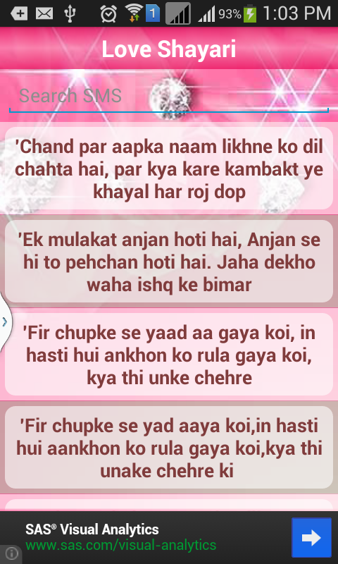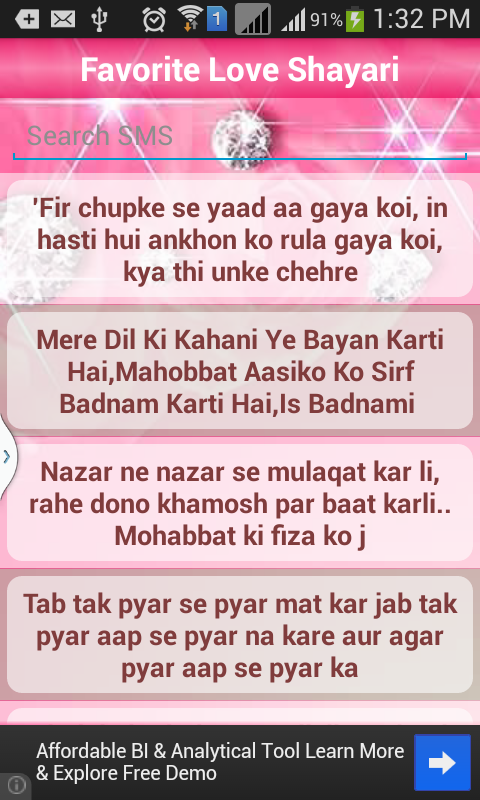 This is Ultimate New & FREE Offline collection of Love Shayari(By Aiss Pvt Ltd) across various Type lIke Love Romantic. Under this app you can find well categorized collection of Shayari SMS and messages which you can share with your friends