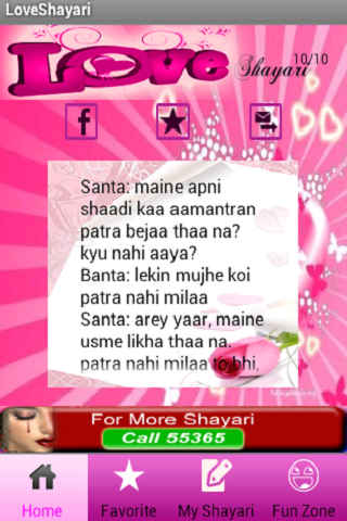 If you are in love then get ready to relive the nostalgia with Love Shayaris. Install the Love shayari widget to discover the most beautiful love shayaris that will fill your life with romance and give expression to the feelings in your heart. Make your sweetheart’s day special by setting the mood – read, recite and share love shayaris. Carry this romantic collection of verses in your mobile and send a beautiful love shayari whenever, wherever. Make your emotions sound even more special with our words and fill your life with the magic of love.