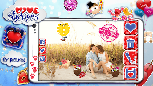 ☻ Let's have some fun with love stickers for free! Take a look at the cutest stamp pack inspired by passion and romance and decorate pictures with your partner like never before. Hearts, flowers, cute animals, I love you stickers, Valentine stickers and much more – inspire everyone around you with these cute pic decorations.Share them across all social networks and let everyone see your photo wonder works. Cute stamps, Christmas stickers, love symbols, stickers for teens, - the choice is all yours; combine lots of lovely decorations for photos and create a perfect pic mix.