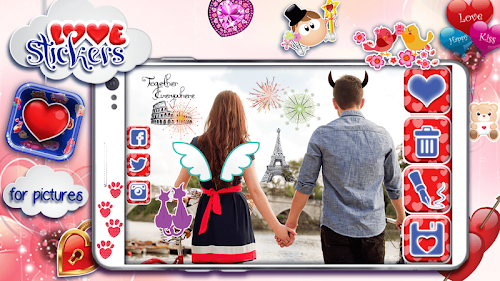 ☻Face stickers and emoticons for everyone's taste absolutely free! Get ☻Love Stickers for Pictures☻ from the market today and become the master of cute picture editing and photo manipulation. Check out our other picture enhancer apps, writing on picture apps, cute girl collages, luxury photo frames, filter effects with quotes and sayings and have fun decorating your sweet moments.