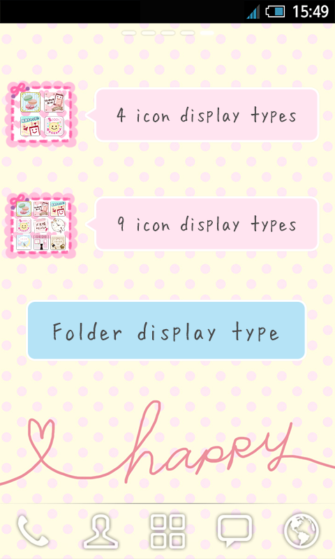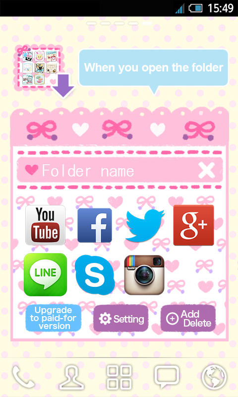 There are many lovely folders made for girls♪  When you want to arrange the application icons on the home screen, you can arrange the folders you like in a cute way!