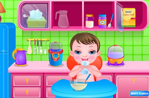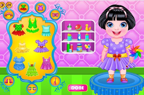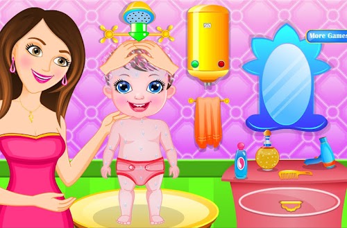 Help this mommy with her baby. Help with washing the baby, feeding the baby and dressup the baby. You can help with caring for the baby in normal life. When the baby wakes up in the morning the mommy will wash her baby in bath. After washing you dressup the baby. Choose the best outfit. You can choose from a lot different clothes for the baby. After washing and dressing up the baby can get his breakfast. Make good food for the baby and feed him his breakfast. Have fun with caring for this cute little baby!