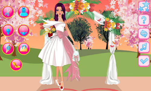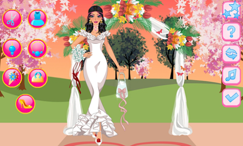 All girls dream of the perfect wedding day since they are little girls. This beautiful girl is a talented fashion designer and she created many exquisite bridal gowns for celebrities and many other people who liked her style. For her wedding day she decided to wear a special wedding gown from her new collection. She can't really decide which one is the most beautiful and she needs your help for this. Have fun and dress her up as you like best. Don't forget to also choose a matching hairstyle and some bridal accessories for her. Have fun playing this fun wedding game!