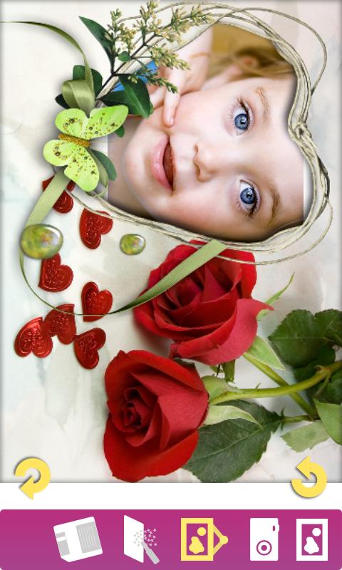 Apply beautiful heart photo frames for your love pictures. You can either choose an existing picture or take new picture for applying. The app has a collection of more than 100 beautiful frames for you to choose.