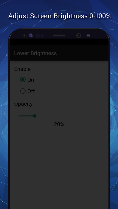- Easy to use. Just enable and set the percent of brightness level (0-100%)