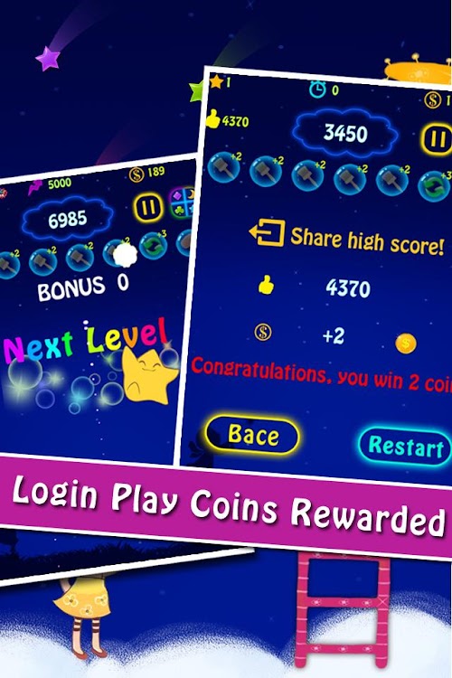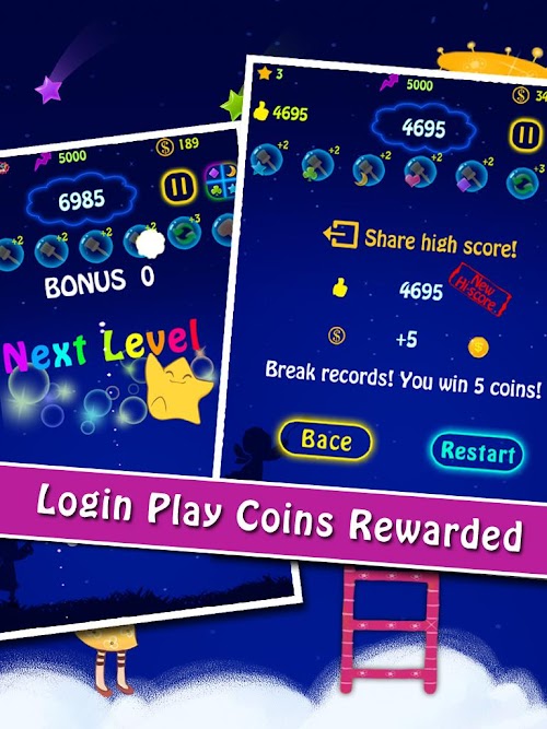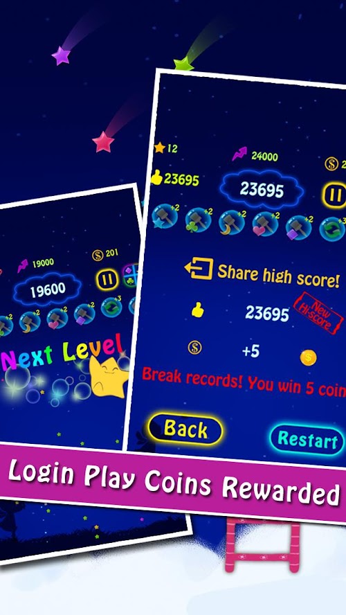 - Try to clear all stars in the sky, the least stars you left, the more bonus you will get.