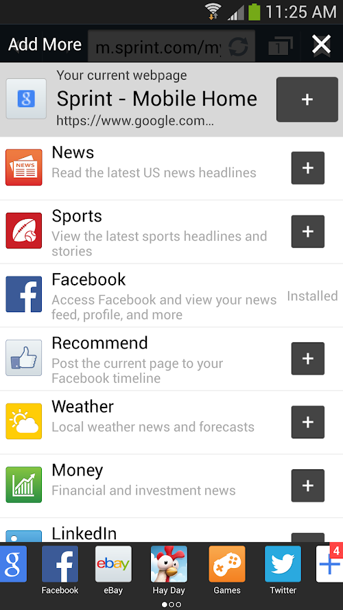 + Add More! Add your current page as a custom button, and browse for new buttons as they become available.