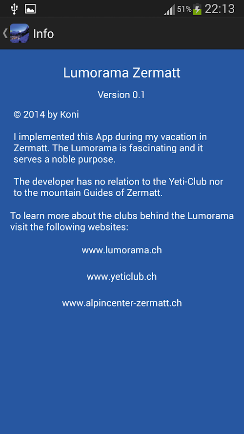 If you are looking to download other versions of Lumorama Zermatt Android App, We have 2 versions in our database. Please select one of them below to download.