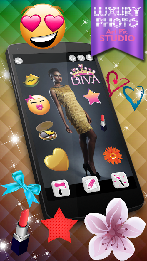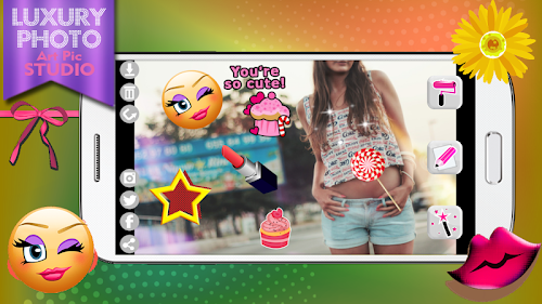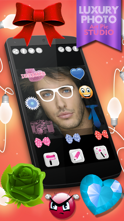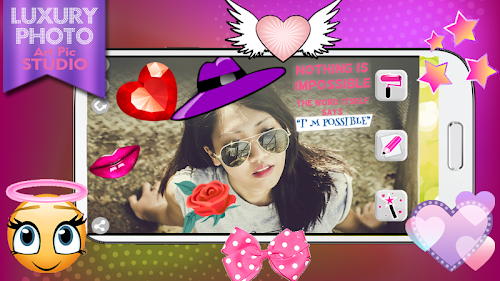 If you love glamour and elegance, ✦ Luxury Photo Art Pic Studio ✦ is an ideal photo editor for you. Decorate your pics with cute butterflies, hearts, flowers, candies, stars, and kisses, and post your pix on all social networks. Add elegant diamonds, sunglasses, dollars, bows and rainbows to your selfies. Enhance your photographs with lovely quotes and sayings about luxury and style, and introduce some glamour into your life. Add wonderful effects with hearts, starts, and lighting balls. Get this completely free collection of photo stickers today and enjoy every minute of using it.