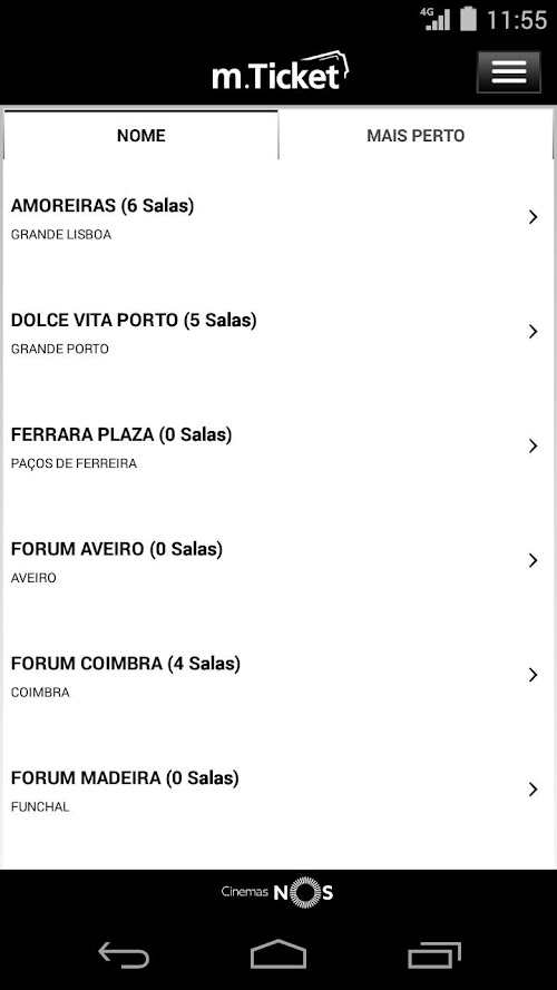 Com o m.Ticket Cinemas NOS, utilize o seu telemóvel para escolher o filme, comprar o bilhete de cinema a preço especial, receber o bilhete por SMS no telemóvel e entrar directamente em qualquer sala de cinema NOS. Prático e cómodo, sempre no seu telemóvel.