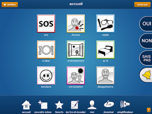 - Fonction " nouvelle " icône qui permet d'ajouter de nouvelles icônes personnalisées avec des images et des phrases