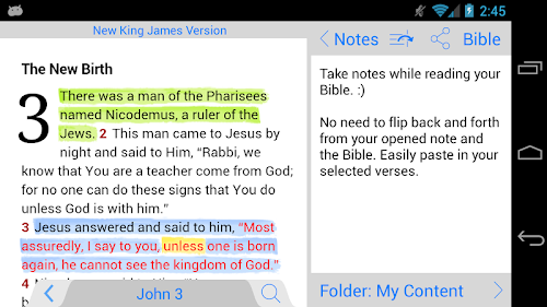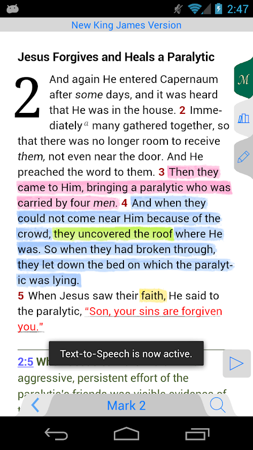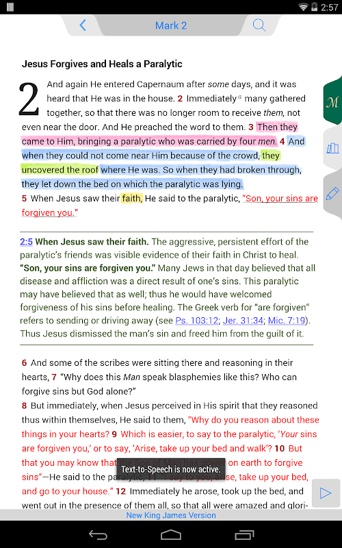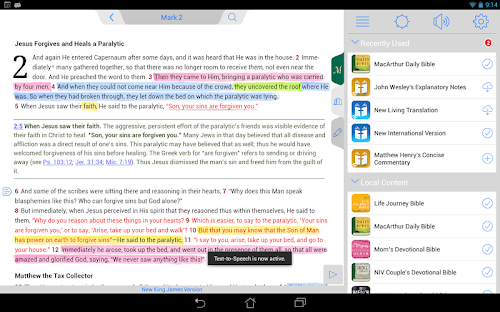• Bible talks to you! Text-to-Speech allows the Bible to be read to you out loud