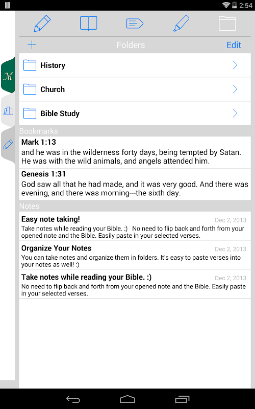 • Share verses & notes via Google+, Facebook, Twitter, email, & SMS