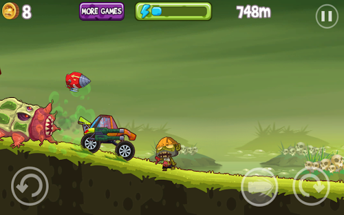 Mad Zombies: Road Racer has all the zombie smash game ingredients to keep you busy for hours to come! We have some unique looking vehicles, different environments each with their own unique aspects. Don’t forget about those stupid zombies, yeah it’s cars vs zombies in this up hill racing game. Smash into them to create some zombie roadkill for the death worm behind you! If you love zombie road racing games then you need to try this newest zombie game for sure. As you smash your way through the insane looking levels, you need to conquer big mountains. But hé you are a real hill climb racing driver so that will not be a problem for you. Make sure you charge your nitro bar, you can fill it up by performing front and back flips